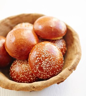 Gebruik uw briochebroodjes voor het ultieme hamburgerbroodje. Voeg gewoon een sappige hamburger, uw lievelingskaas, sauzen en salade toe. Doodeenvoudig.