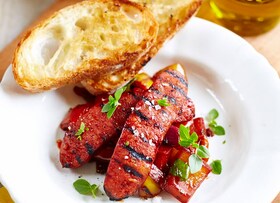 U kunt uw lekkere ciabatta bijvoorbeeld serveren met gegrilde chorizo, pepperonata en rucola.